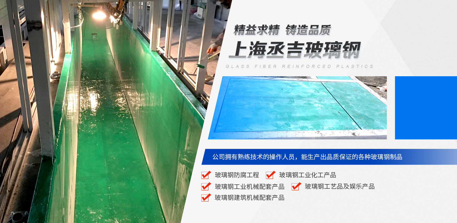 上海丞吉玻璃鋼有限公司,是一家集合玻璃鋼制品設計、制作、現(xiàn)場組織施工、研發(fā)、銷售、網(wǎng)購,為一體的綜合型服務公司。公司多年來專業(yè)銷售與生產(chǎn)大型雕塑景觀、大型兒童游樂設施、冷卻塔、槽罐、玻璃鋼船、室內(nèi)裝飾物、汽車護甲保險杠大包圍及底盤、化工烘料托盤、防腐工程、風管、水槽、化糞池、花盆,垃圾桶、建筑材料等各種玻璃鋼產(chǎn)品(FRP),公司配備專業(yè)設計師(兼職),為廣大客戶設計模具、查看圖紙、打樣。并配備具有熟練技術(shù)的操作人員,生產(chǎn)出品質(zhì)保證的各種玻璃鋼制品。